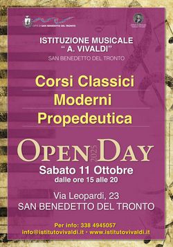 In vista dell’apertura dell’anno accademico 2025/2026, sabato 11 ottobre, l’Istituzione musicale “Antonio Vivaldi” aprirà dalle ore 15 alle 20, le porte della sua sede di via Leopardi (edificio dell’asilo “Merlini”) per un “open day” nel corso del quale saranno presentati spazi e corsi a tutti coloro che sono interessati ad avvicinarsi alla musica o approfondire la conoscenza degli strumenti musicali. Saranno infatti illustrati nel dettaglio le attività didattiche e l’offerta formativa.