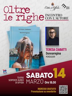 Offida si prepara ad accogliere Teresa Ciabatti, tra le autrici più intense e discusse del panorama letterario italiano, protagonista del nuovo appuntamento della rassegna “Oltre le righe - Incontro con l’autore”. L’evento si terrà sabato 14 marzo (ore 18), al teatro Serpente Aureo.