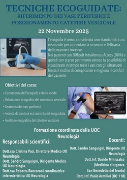 Lo scorso 22 novembre, si è svolta la prima edizione del corso aziendale “Tecniche ecoguidate: reperimento dei vasi periferici e posizionamento catetere vescicale”, riservato agli infermieri e strutturato su due giornate di formazione. Il programma ha previsto lezioni teoriche, esercitazioni pratiche e training individualizzato.