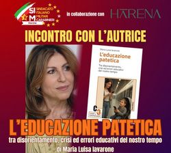 Mercoledì 18 marzo (ore 19), presso "Harena", il Sim Carabinieri, in sinergia con la dottoressa Patrizia Ferrara, presenta l’ultima opera della docente: “L’educazione patetica”. Un incontro aperto al pubblico per esplorare le radici del disagio giovanile e del bullismo