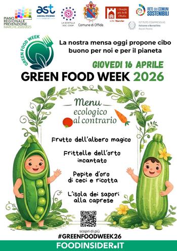 Il comune di Offida rinnova anche quest’anno la propria adesione alla Green Food Week, l’iniziativa promossa da Foodinsider dedicata alla diffusione di una ristorazione scolastica più sana e sostenibile.