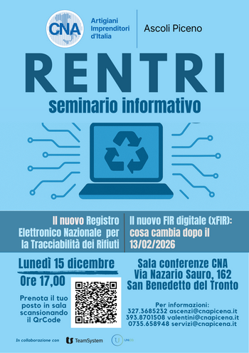 Una particolare attenzione sarà riservata al servizio “Assistenza Rentri” promosso dalla Cna di Ascoli e pensato per soddisfare le esigenze delle imprese, che in questo modo potranno usufruire di una procedura agevolata di gestione del sistema Rentri, attraverso la delega all’associazione di categoria.