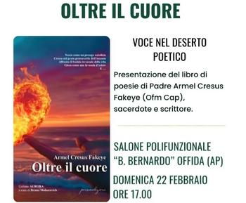 Domenica 22 febbraio (ore 17), il salone polifunzionale del Beato Bernardo di Offida, ospiterà la presentazione del nuovo libro di padre Armel Fakeye (Ofm Cap), sacerdote e scrittore, dal titolo "Oltre il cuore - voci nel deserto poetico".
