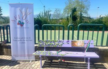 La panchina è stata realizzata dalla maestra d’arte Daniela Carolina Piunti, in collaborazione con Stefano Iervicella, e si inserisce all’interno del progetto promosso dal Comune nell’ambito del percorso dedicato alle panchine dipinte - come per esempio la panchina rossa del 25 novembre - che diventano un segno visibile che invita metaforicamente la comunità a soffermarsi sull’argomento.
