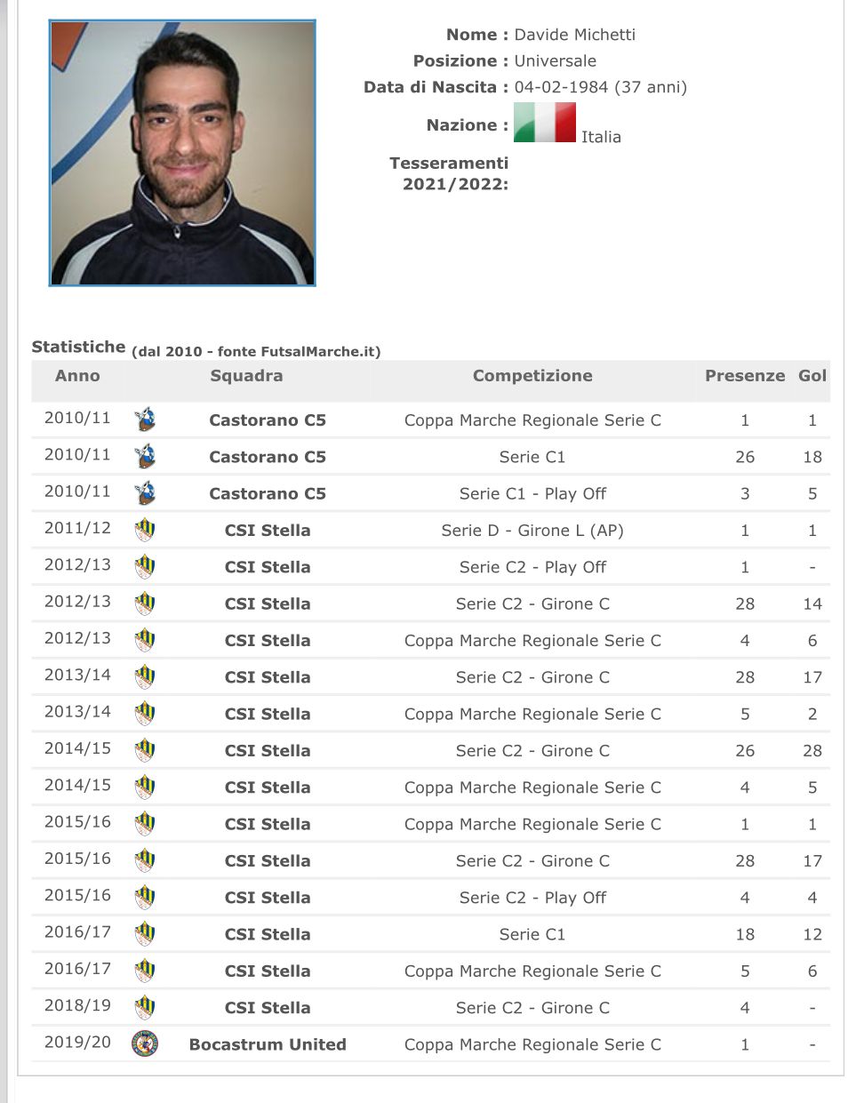 Michetti (37 anni), vanta un curriculm di tutto rispetto nel calcio a 5, dopo aver giocato per tanto tempo nelle squadre di serie B, C1,C2 e D.