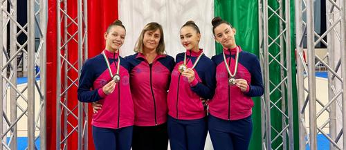 Le atlete che hanno strappato l’agognato pass sono Sara Paci (campionessa al cerchio), Chiara Iachini (terza classificata alla palla) e Matilde Poloni (terza classificata al nastro)